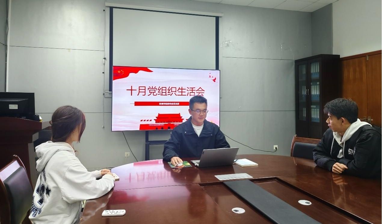 10月28日,我院研究生党支部组织召开“研究生党支部深化理论学习,凝聚中华民族共同体意识”专题组织生活会,全体支部党员参会,学院党委办公室副主任胡文杰老师共同参与学习。