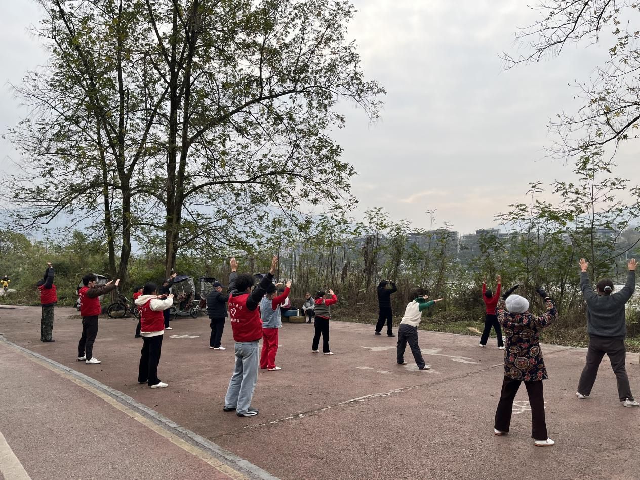 活动前期,体育学院与各社区充分沟通,结合不同社区居民的年龄结构与健身需求,精准定制教学内容,实现“一社区一特色”的个性化教学。在华兴社区,教学团队聚焦基础健身项目,开展太极拳与广播体操教学。太极拳教学中,志愿者从招式拆解、呼吸调节等基础要点入手,耐心指导居民掌握动作要领,帮助大家感受传统武术的沉稳与灵动;广播体操教学则兼顾实用性与普及性,针对中老年居民常见的身体不适,优化动作设计,让居民在简单易学的动作中活动筋骨、增强体质。