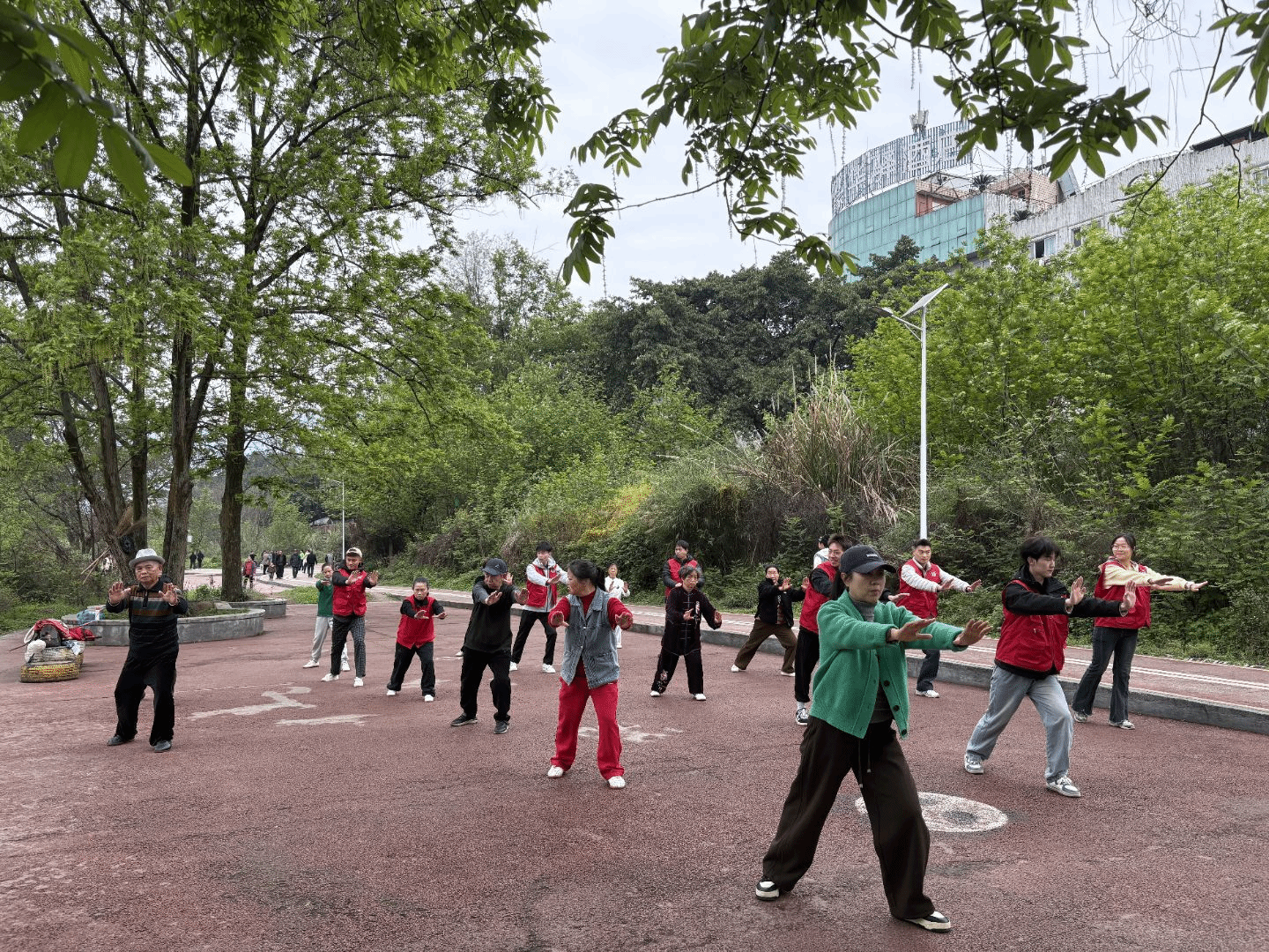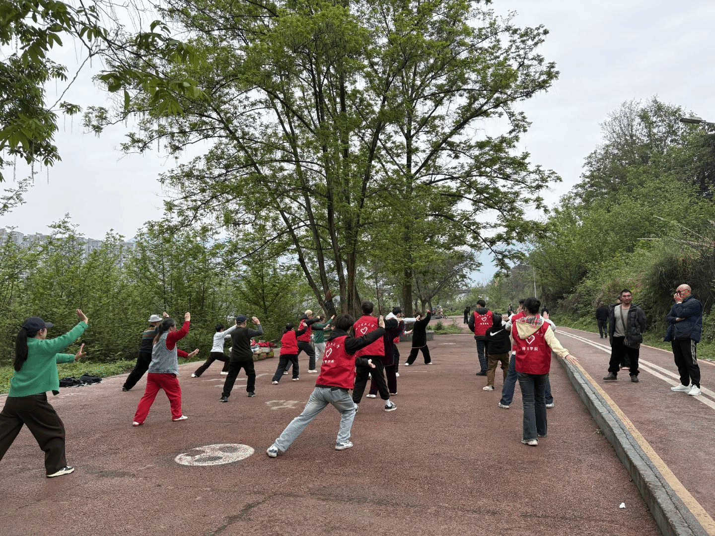 2026年3月22日,志愿者们早早来到各自服务地点。志愿者们身着统一服装,精神饱满,热情迎接陆续前来的社区居民。考虑到参与活动的居民年龄偏大、基础不一,志愿者们特意设计了由浅入深的教学方案,从起势、野马分鬃等基础动作入手,通过动作分解、慢速示范和一对一指导,帮助大家在轻松氛围中掌握要领。
