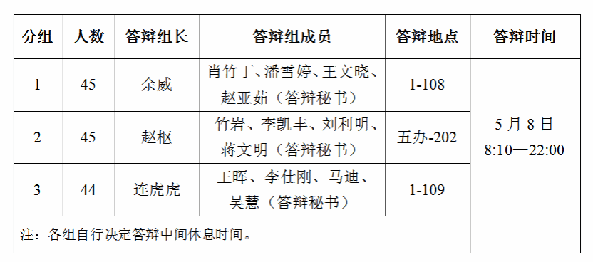 一、答辩时间、地点及分组