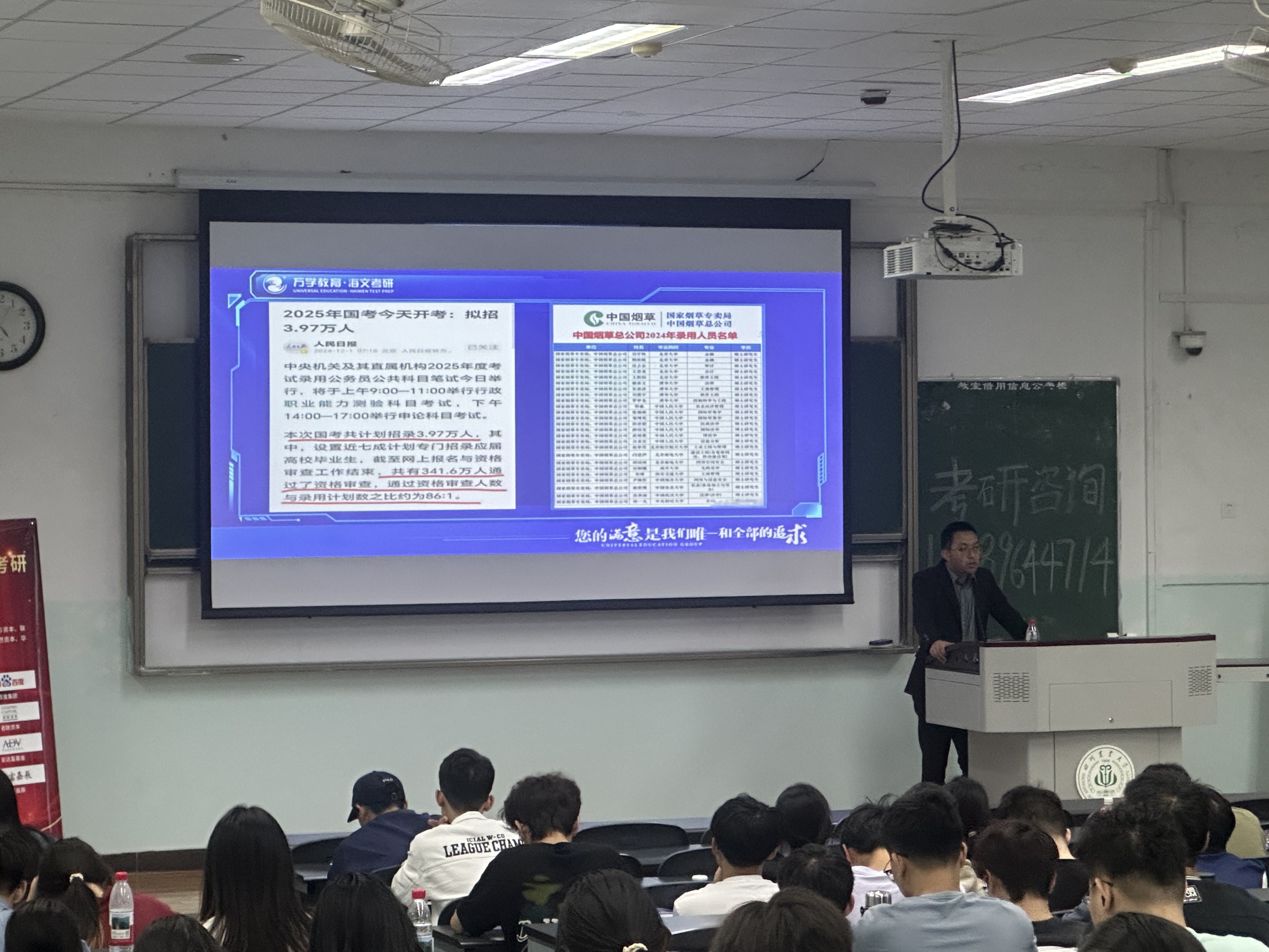 2025年10月14日,为助力2023级学子明晰考研方向、高效备考,四川农业大学体育学院,理学院,信息工程学院联合举办“上岸计划——考研全程规划指导专场讲座”,特别邀请万学教育考研指导老师赵卓,为有考研意向的同学送上全方位的备考“干货”支持。