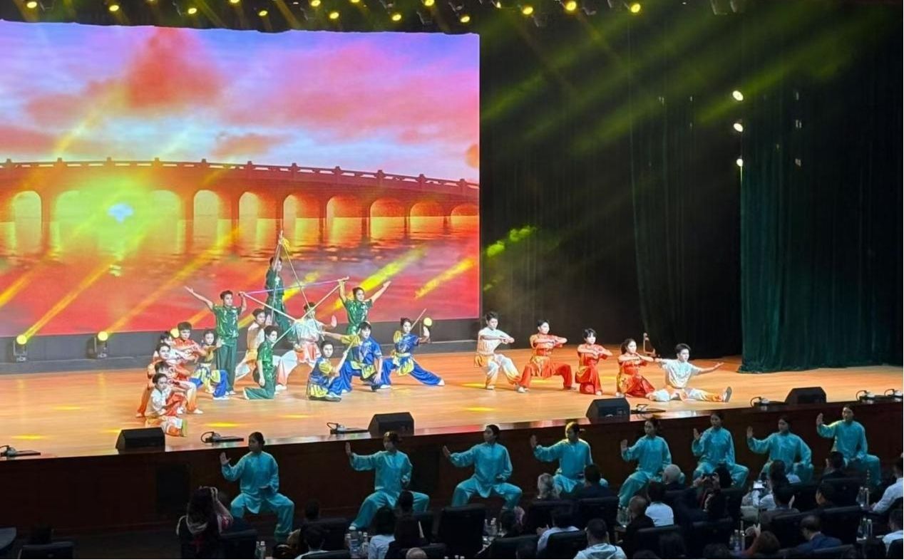 表演现场,伴激昂音乐,队员们尽显风采:太极舒展如行云流水,南拳刚劲气势十足,枪棍演练利落飒爽,引得观众惊叹。表演结束后,不少使节拍照记录,还主动询问招式文化内涵,队员们耐心讲解,让外国友人直观感受中华传统文化。