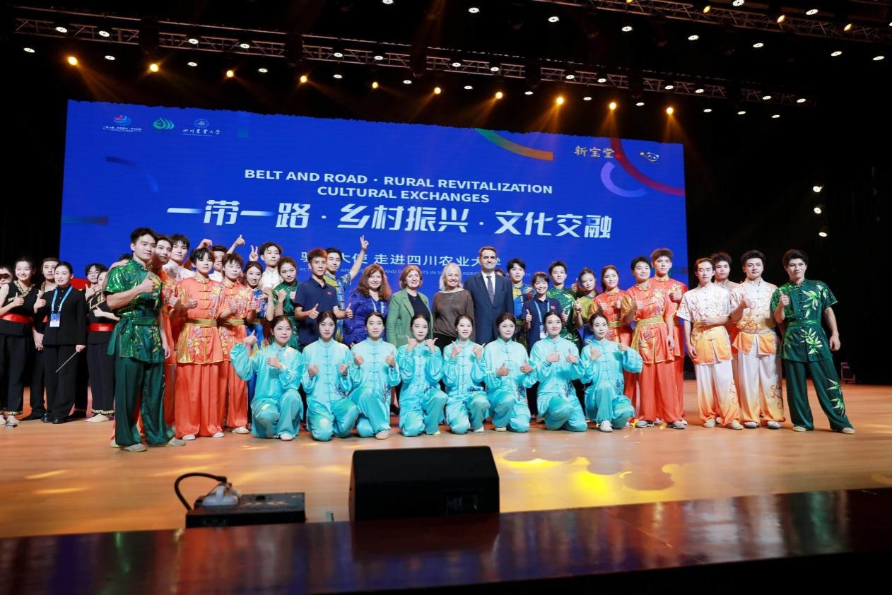 10月18日,四川农业大学雅安校区彩旗飘扬,由雅安市雨城区人民政府与川农联合主办的“一带一路・乡村振兴・文化交融”公益交流活动在此举行,11国驻华使节及家属出席,川农体育学院武术队的表演成文艺汇演亮点。