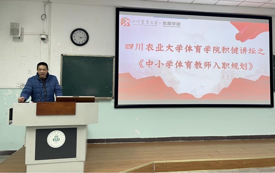 11月18日,学院“积健讲坛”迎来《中小学体育教师入职规划》专题讲座。雅安市雨城区体育教研员、高级教师张云龙受邀主讲,聚焦体育教育专业大一大二学子职业发展需求,提前铺就入职准备“早班车”,现场座无虚席,互动热烈。