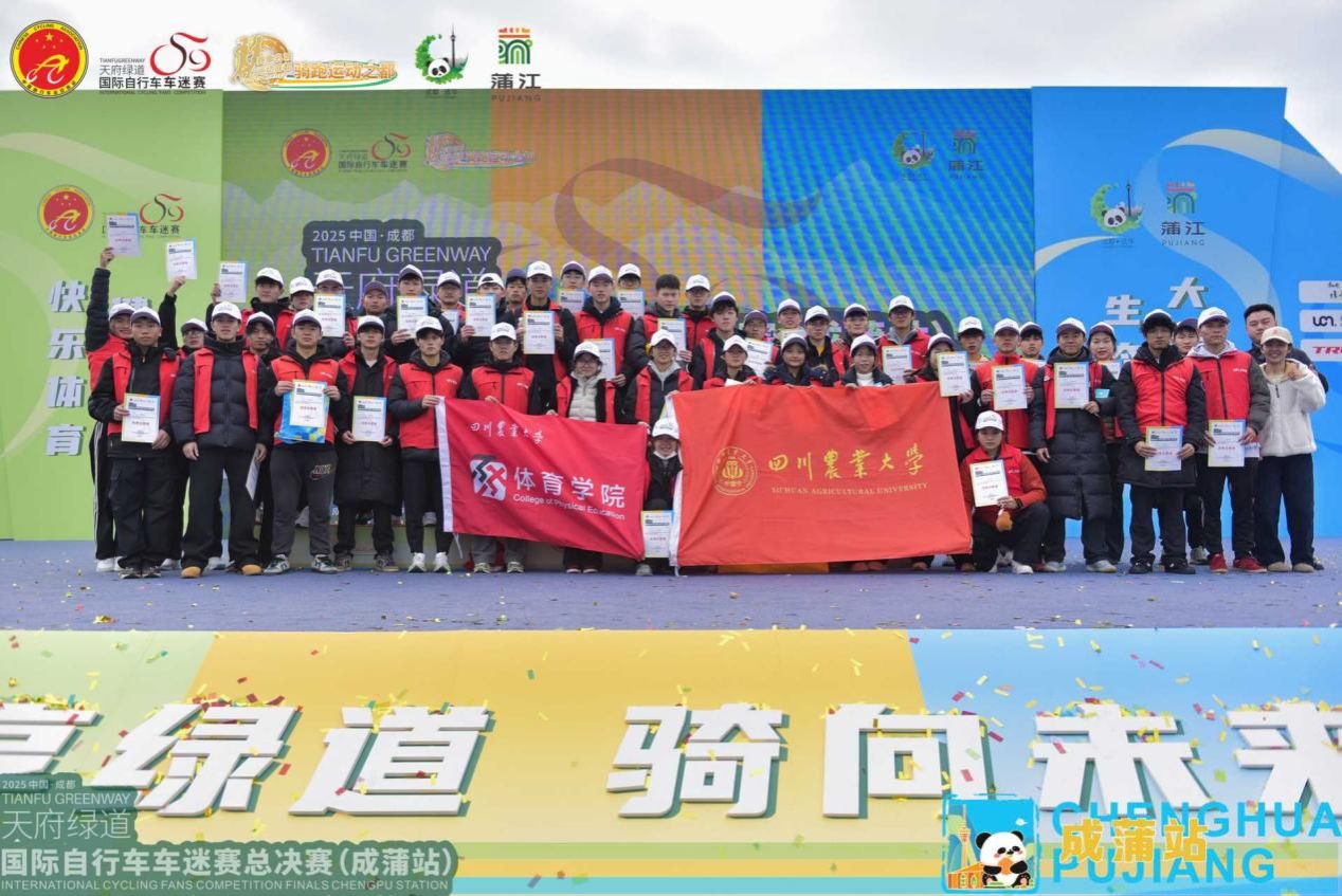 11月21-22日,为期两天的2025中国・成都天府绿道国际自行车车迷赛(简称“车迷赛”)总决赛(成蒲站)在成都市蒲江县圆满落幕。四川农业大学体育学院66名学子组成的志愿服务队全程参与赛事保障工作,以专业的素养、饱满的热情和扎实的行动,为赛事顺利举办注入青春力量。