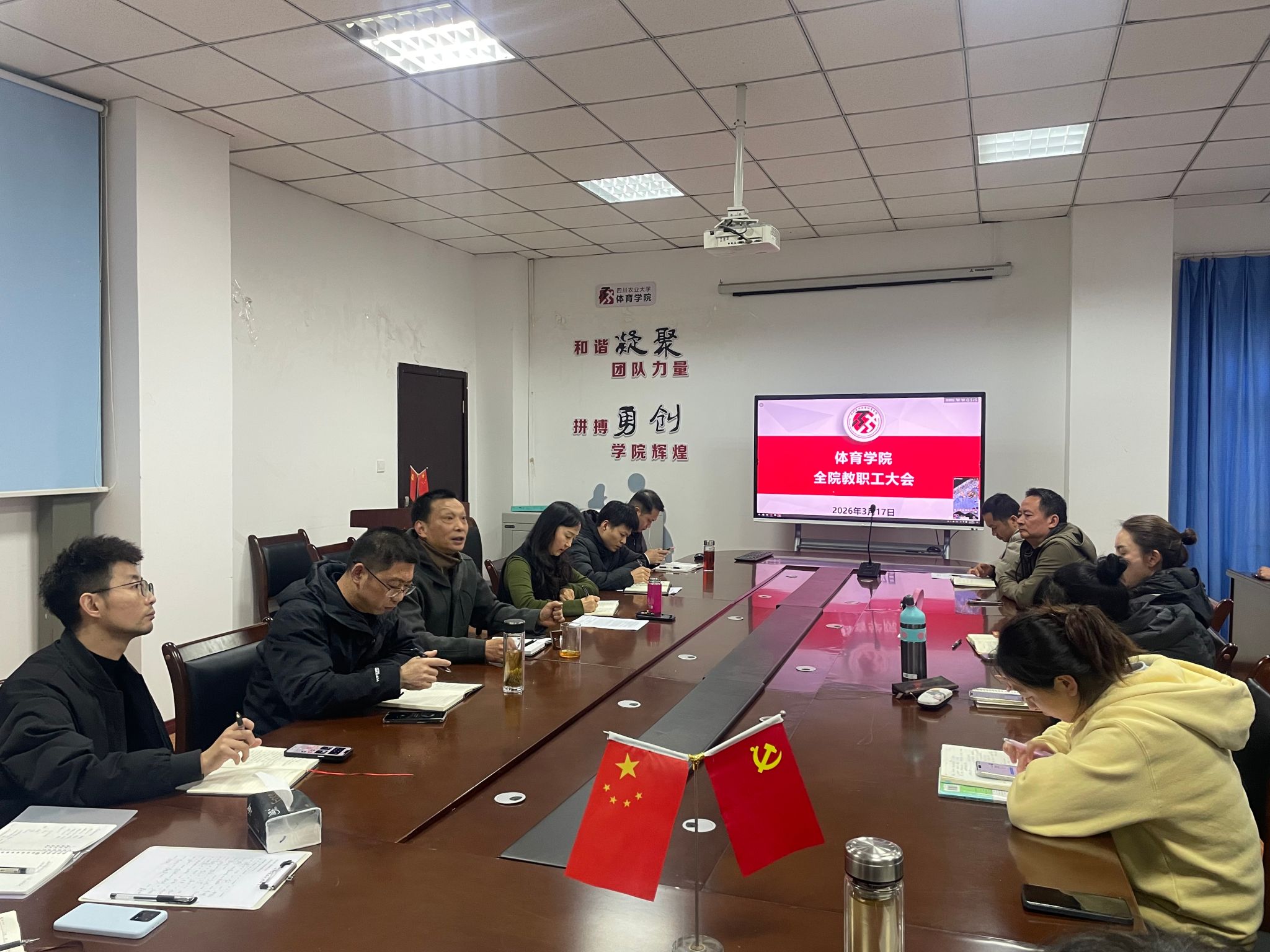3月17日,我院召开全体教职工大会,围绕校友服务、校运会筹备、教学管理及毕业生就业等近期重点工作进行交流安排。学院领导班子及全体教职工参会。
