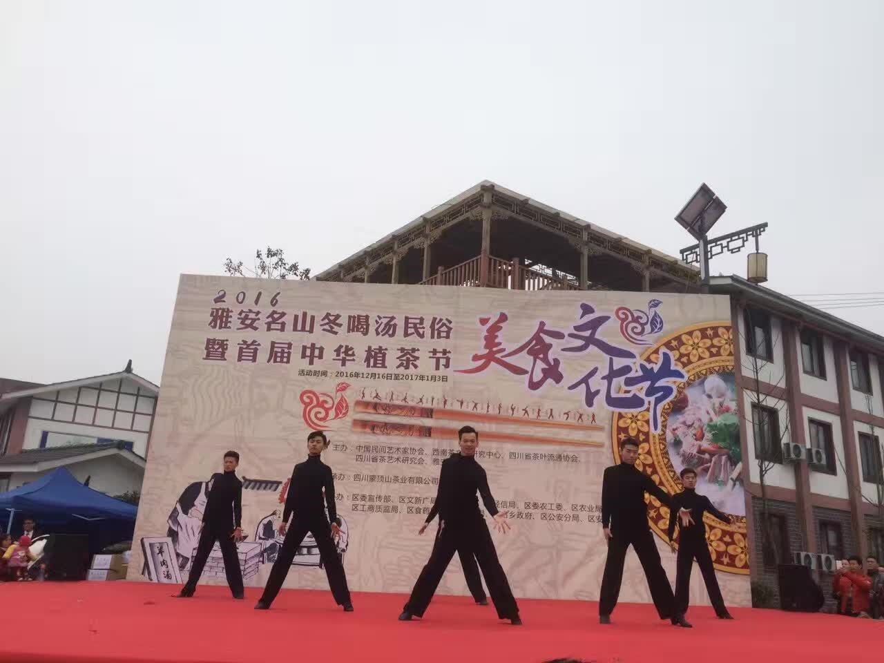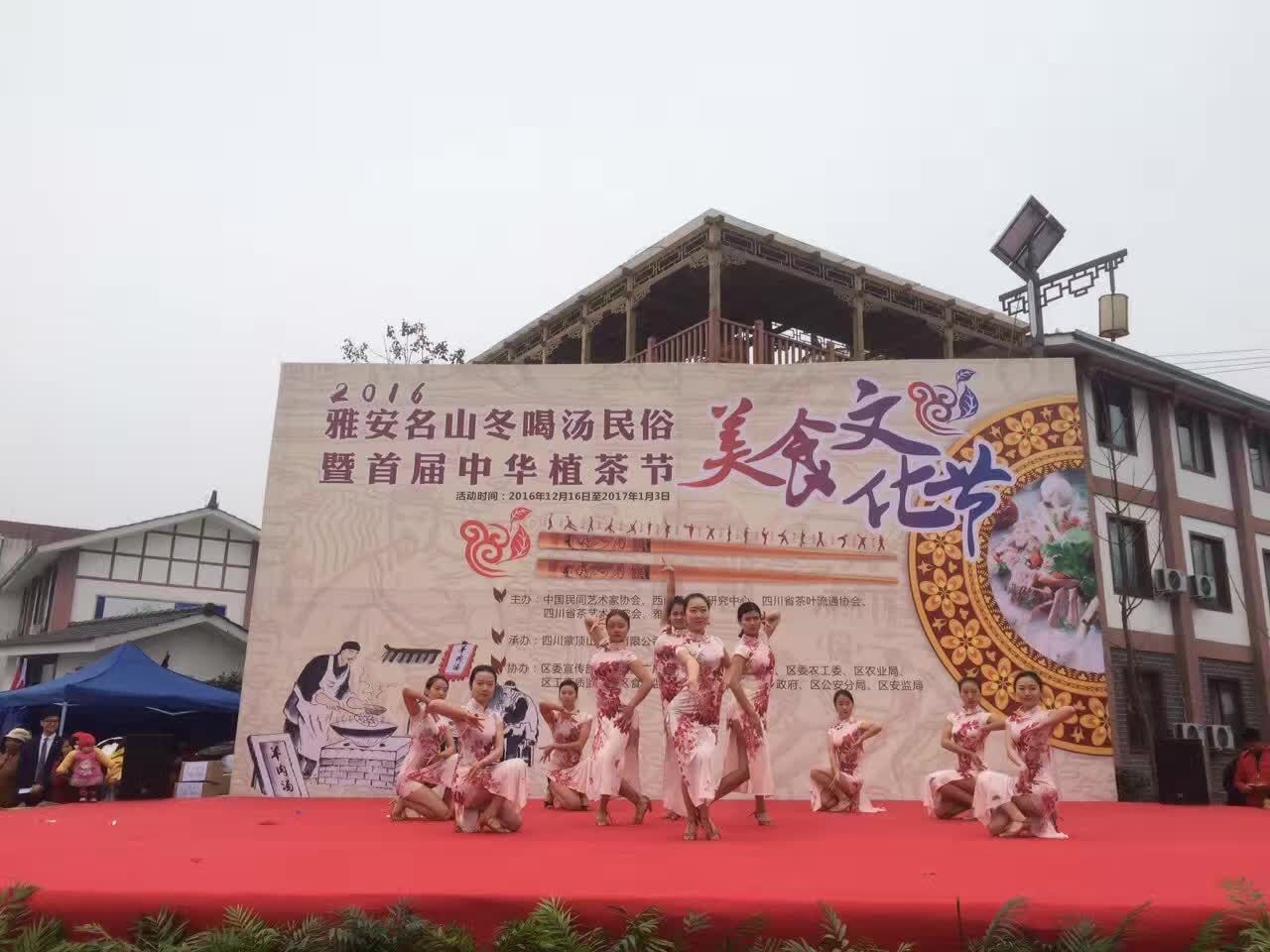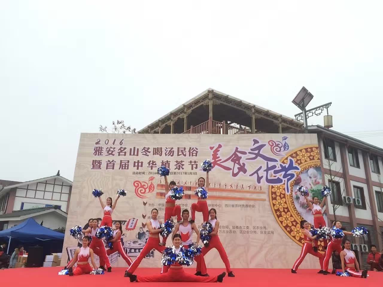 12月30号,由中国民间艺术家协会、西南茶文化研究中心、四川省茶叶流通协会等主办,四川蒙顶山茶业有限公司承办的雅安名山冬喝汤民俗暨首届中华植茶节在雅安市名山区拉开帷幕,体育学院健美操和拉丁舞代表队的学生在杨军老师和余明荣老师的带领下参加了本次文化节开幕式的表演。健美操代表队和拉丁代表队成员依次表演了健美操之《创造奇迹》、拉丁舞之《余情未了》和傣族舞之《雀之跃》3个节目,节目质量高、气氛好,可谓是此次节目演出的重头戏,现场的观众目不转睛,他们尽情享受着精神文化大餐,演出现场掌声此起彼伏,节目受到观众的称赞。