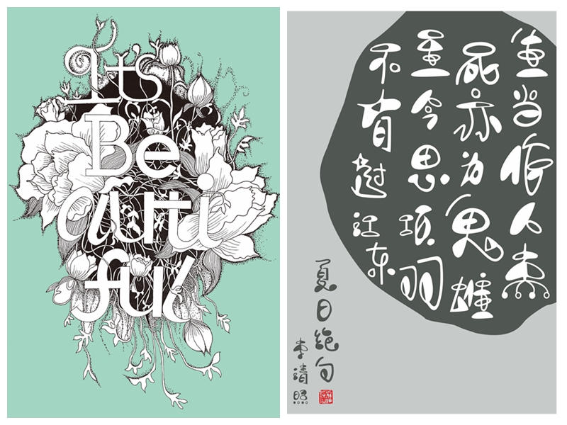 文字对于艺术,是图像画面构成的要素之一。它是字,又非字,它是图像,它能传达感情,表现意境,能够给人以美的感受。文字设计是精微的,横、竖、点和圆弧等线条的组合,结构和线条的搭配,笔画与笔画、字与字之间的协调,这些都影响着视觉传达的节奏与韵律,表现力和感染力。