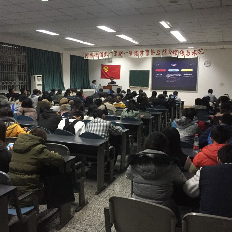 2016年12月9日艺术与传媒学院及体育学院于十教b212教室开展了第一期第一次团校培训活动。本次活动由16级各小班团干部以及团委各部门干事参加,还邀请了艺术与传媒学院及体育学院团委各部门部长和副部长作为本次活动嘉宾。