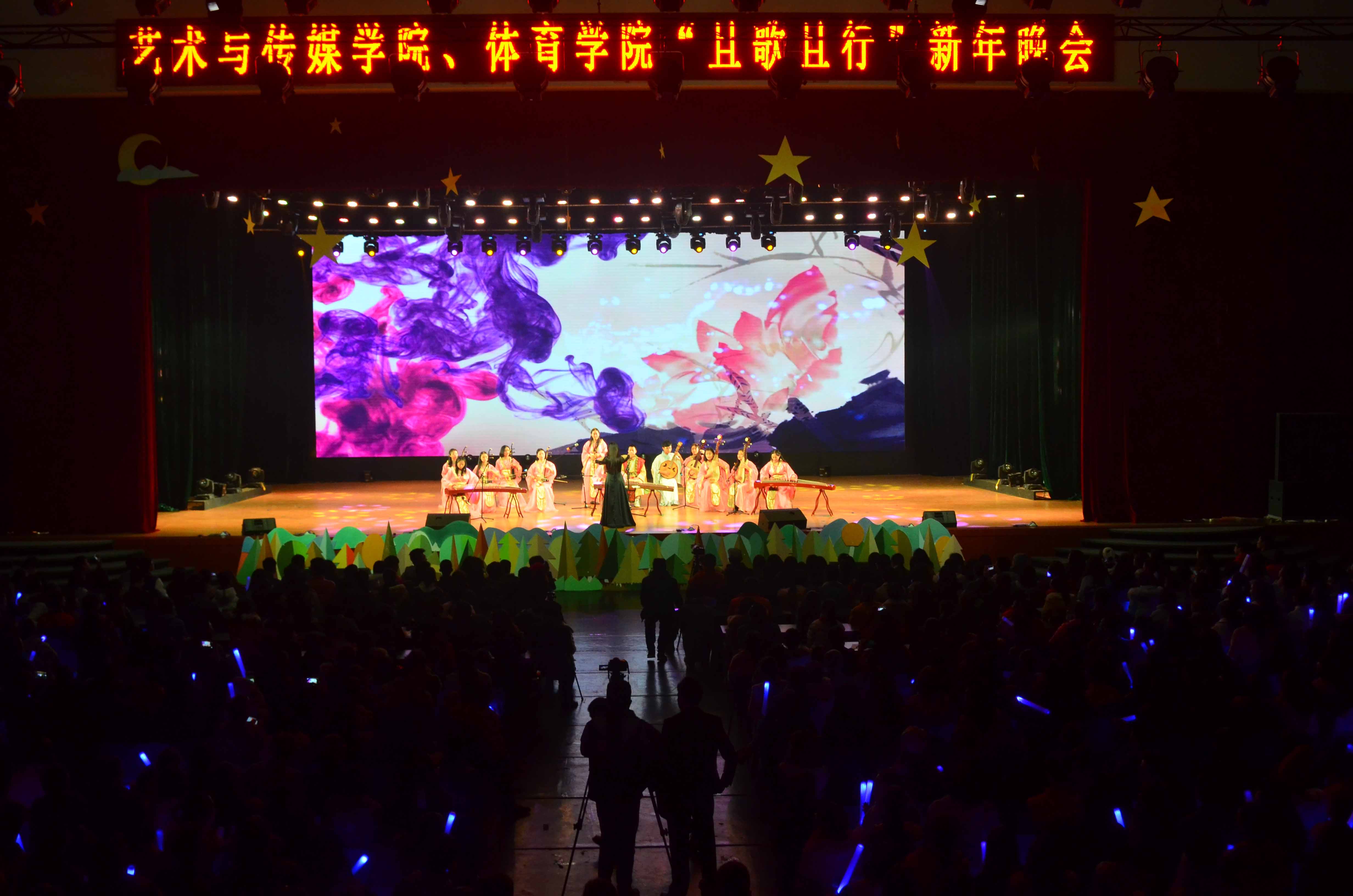 12月20日晚7:00,艺术与传媒学院及体育学院2016年“且歌且行”新年晚会于体育馆隆重举行。校副厅级调研员何临春、学生处副处长冷军、体育学院院长邓跃宁、艺术与传媒学院党委书记向兵、艺术与传媒学院副院长张丽君、体育学院副院长王建强及其他院受邀嘉宾出席了此次晚会。晚会现场大家欢聚一堂,一起见证艺体两院的七年风雨情。