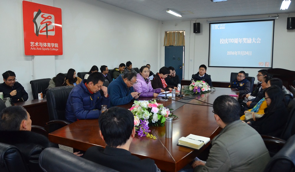11月24日上午,原艺术与体育学院在艺术楼三楼会议室举行校庆110周年暨就业工作奖励大会,对教职工在校庆及就业工作中的辛勤付出与贡献进行表彰奖励。原艺术与体育学院院长邓跃宁,党委书记袁志香,副院长王建强,副院长张丽君出席本次会议。