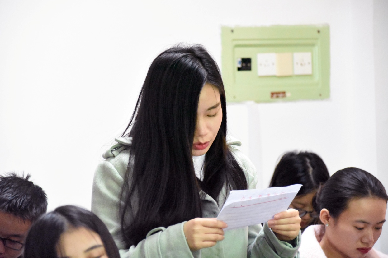 大会开始, 10名中共预备党员依次上台做了预备期总结报告,并正式向组织请示了转正申请。每位同志演讲过后,转正党员在预备期的表现情况、预备期考察情况、预备党员转正意见由负责考察该同志的支部人员进行宣读。紧接着,由现场的群众发表其意见或建议;随后,转正对象回避,支部内正式党员对以上人员的发展问题进行了举手表决。最终,10位预备党员的转正申请获得支部内批准,并接受党内外人士的监督。