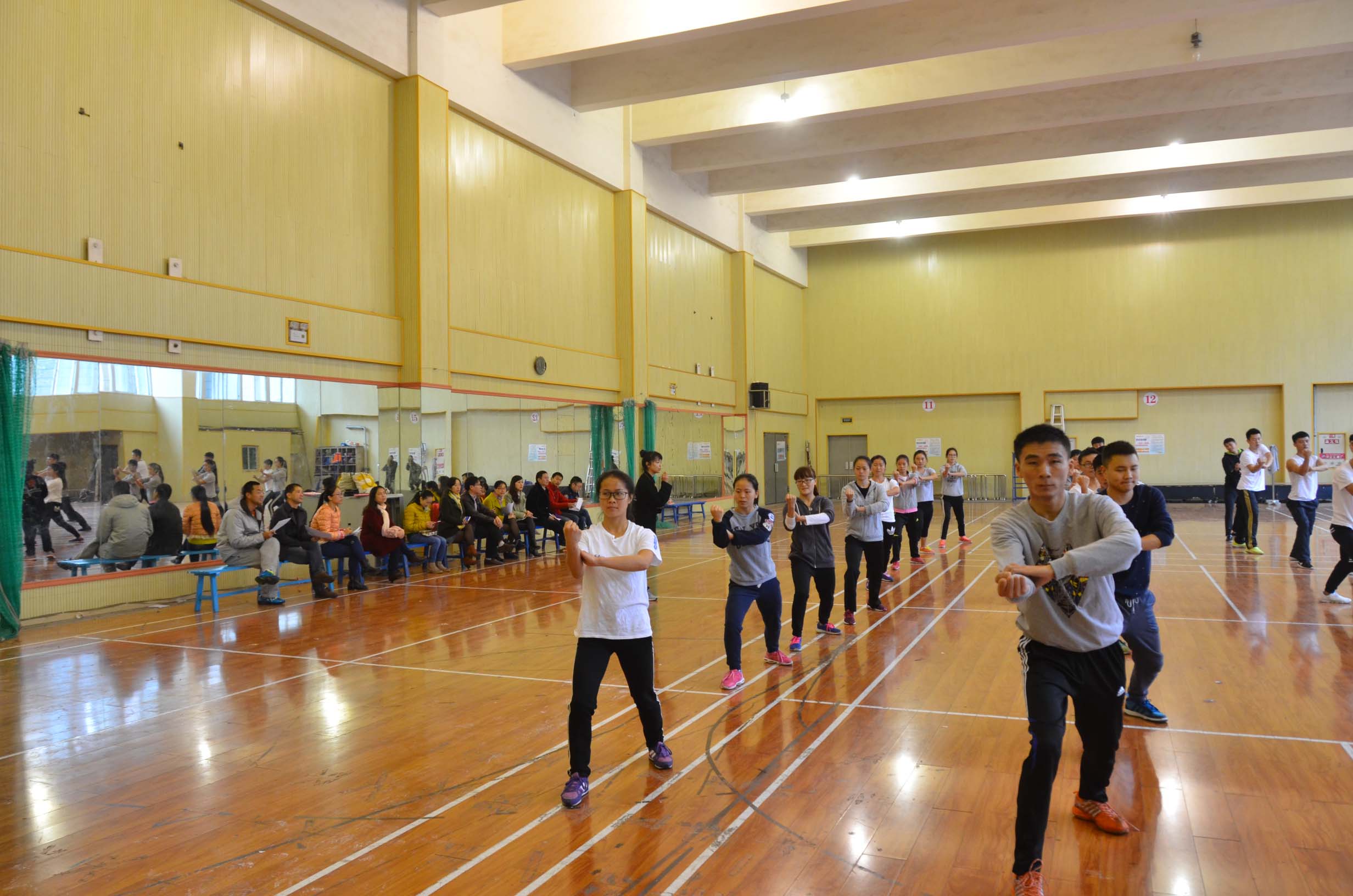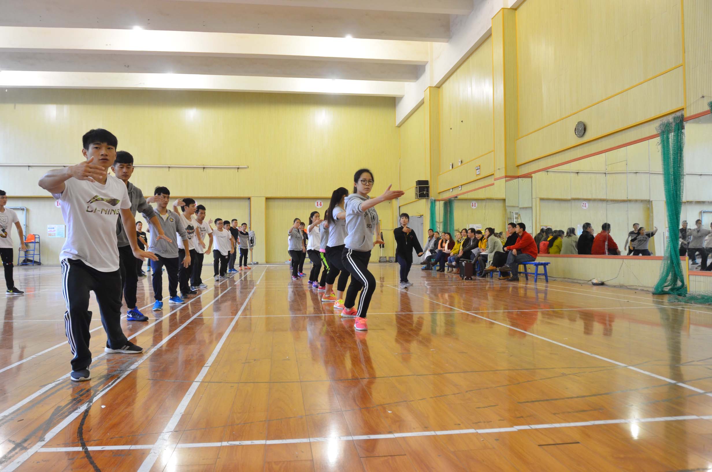 余威老师在体育馆女子健身房为我们带来了《女子太极拳24式》精彩的一课。“武礼育人、武技育体、武德育心”是余威老师上武术课大体的一个指导理念。“严谨、认真、注重学生综合技能的培养”是余威的教学风格 。
