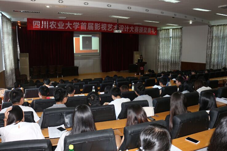 7月6日上午,由学校教务处主办,艺术与体育学院承办的四川农业大学首届影视艺术设计大赛颁奖典礼在艺术楼报告厅进行。2012级广告学专业(广告设计方向)的全体同学和学校教务处母贵琴老师,学院张丽君副院长以及部分教师出席了颁奖典礼。