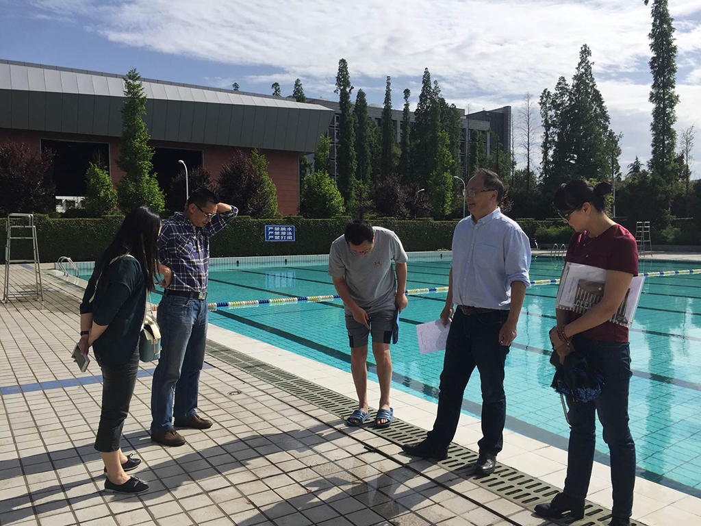 丝丝入扣,重视细节;学院领导分别与5月1 2日、5月15日到雅安新区、老区游泳池及成都校区游泳池进行安全检查,对游泳池安全警示标语、深水区、浅水区标识、防滑标识,救生设备,急救药品一一进行排查,为了给师生们创造安全的游泳环境,领导们的检查细致到地上的每一块破损的地砖。
