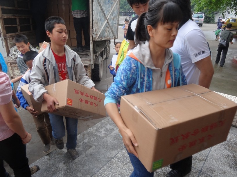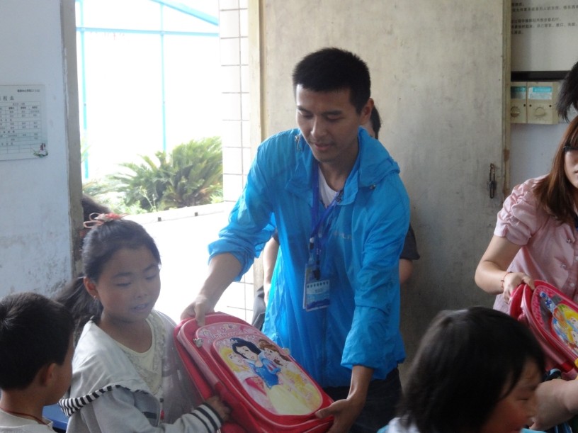 2013年5月15日,学院大三学生、绿风助学负责人杨俊熙陪同无锡灵山慈善基金会项目主管张龙老师,上海微笑图书室的老师以及无锡灵山基金会志愿者们一起来到绿风助学项目学校——北郊乡陇西中心校,给四百多个孩子送上了崭新的书包和丰富的图书。