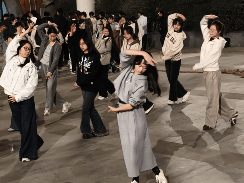 作为开幕式上一道亮丽的风景线,华尔兹舞蹈训练也在同步火热进行。文体部的同学们悉心指导,同伴之间默契配合、相互鼓励。从最初的步伐生疏,到如今随着音乐流畅旋转、裙摆飞扬,舞步渐入佳境。这不仅是技巧的练习,更是对优雅气质与团队默契的生动演绎,静待着在赛场边绽放出别样的青春光彩。