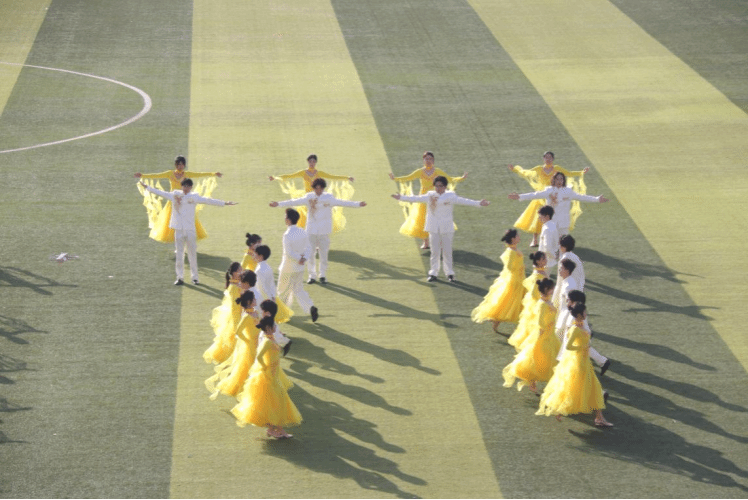 开幕式当日晨光正好,女队员身着鹅黄礼服温婉灵动,男队员礼服挺拔俊朗。舞者们伴着旋律翩然起舞,旋转跳跃间尽是青春优雅,表演落幕掌声雷动,余韵悠长。