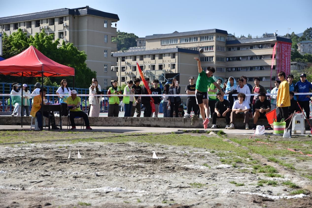 4月18日上午四川农业大学第四十四届校运会赛场上,食品学院朱杰凭借强劲实力,夺得男子铅球项目冠军。