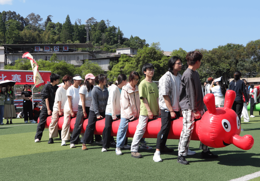 脚下是新区操场的红色跑道,头顶是难以睁开眼的艳阳天。十个人骑在一条胖乎乎的充气毛毛虫上,双手紧握把手,双腿作桨,口号从出发时就乱成一锅粥。“左右左右”还没喊顺,旁边的队伍已经窜出去半个身位。我的步子比前排快半拍,后排又比我慢一拍,毛毛虫像受了惊似的,在原地扭来扭去。
