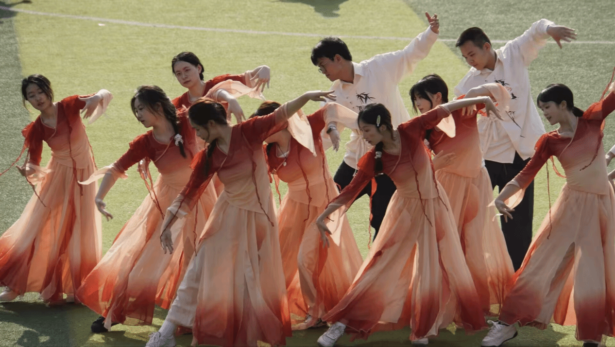 悠扬的校歌旋律缓缓流淌,正式拉开了信工学院形体健美操表演的序幕。赛场上,队员们踏着明快的节拍,步伐轻盈如燕,动作行云流水,每一个节奏卡点都精准无误,每一次队形变换都默契十足。他们身姿挺拔、神情坚定,举手投足间既有健美操的柔美韵味,又饱含少年学子的昂扬锐气,传递出川农学子奋发向上、勇毅前行的精神风貌。赛场之下,我院师生挥舞旗帜、高声呐喊助威,阵阵欢呼声与校歌旋律交织回荡,充分彰显了信工大家庭的温暖与强大凝聚力。